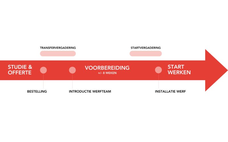 Bij elk project is de projectleider jouw unieke aanspreekpunt. Zo verloopt alles vlotter. Hij of zij stelt het strategisch plan op, bepaalt de uitvoeringswijze & organiseert de uitvoering. Bovendien volgt de projectleider de werf op, van opstart tot oplevering. Er wordt steeds gecommuniceerd in een proactieve geest en elke bouwpartner wordt constructief betrokken in het verloop van de werf. Op die manier gaan wij voor een optimaal resultaat op vlak van planning, kostprijs, kwaliteit en duurzaamheid.